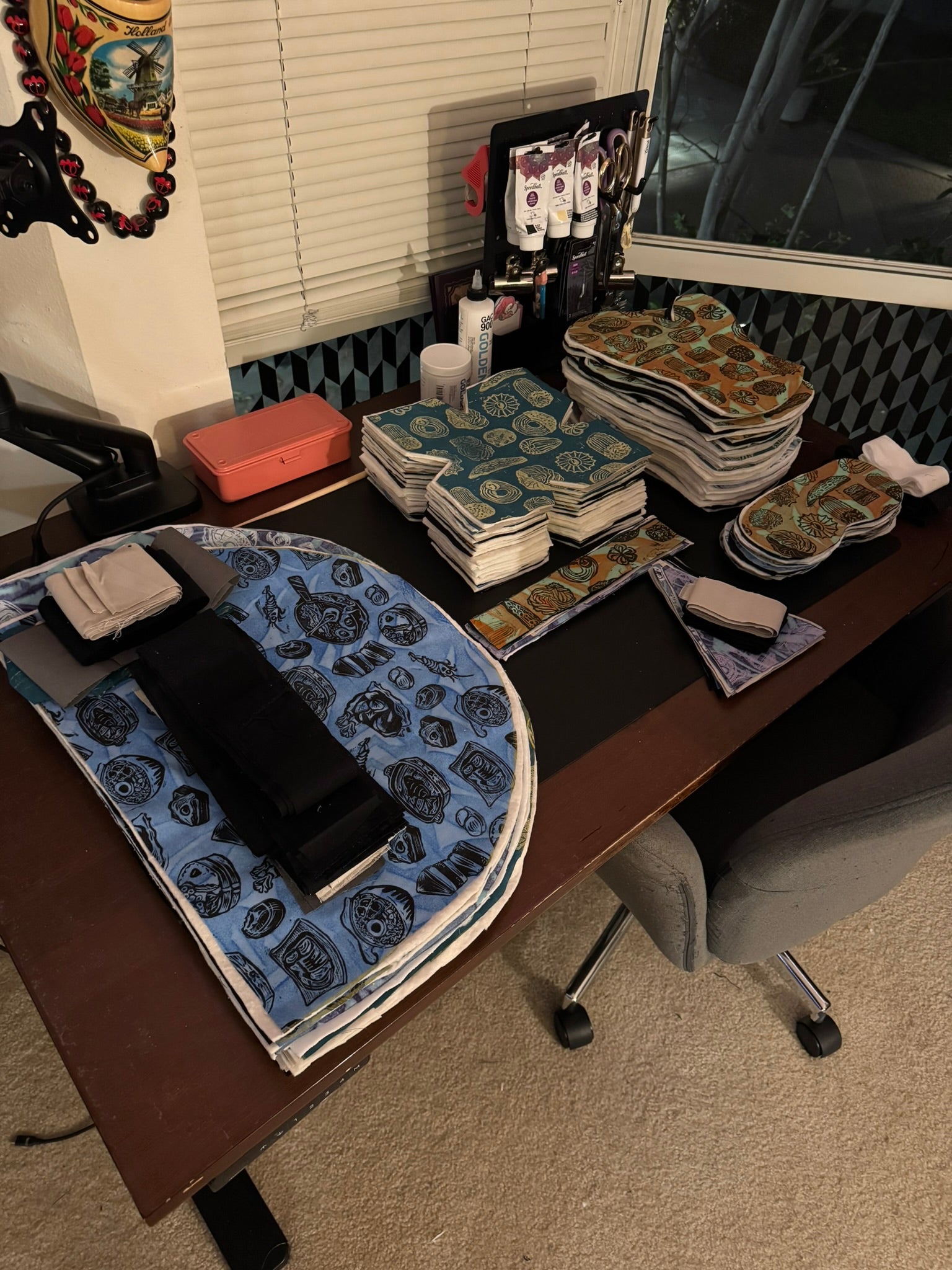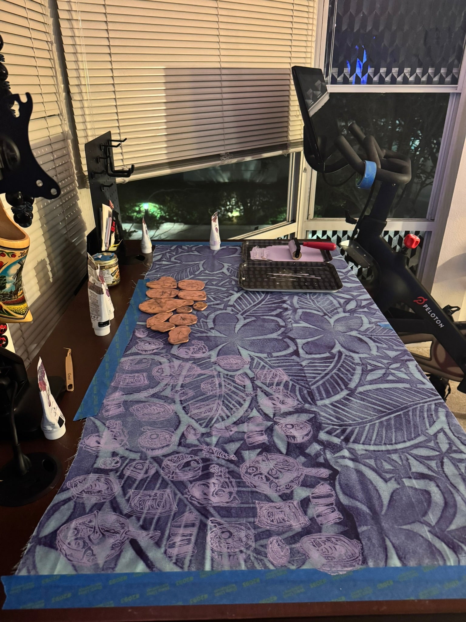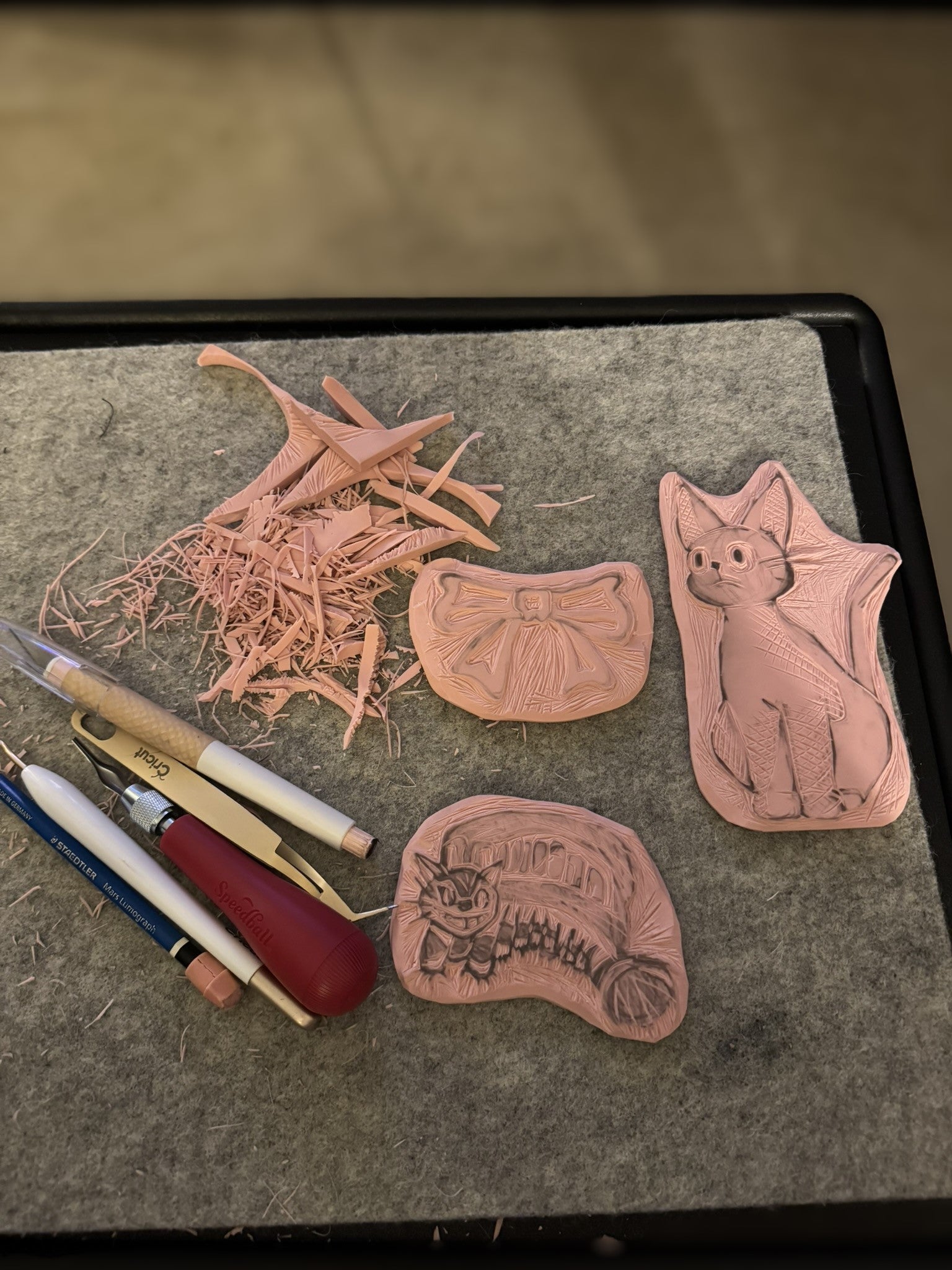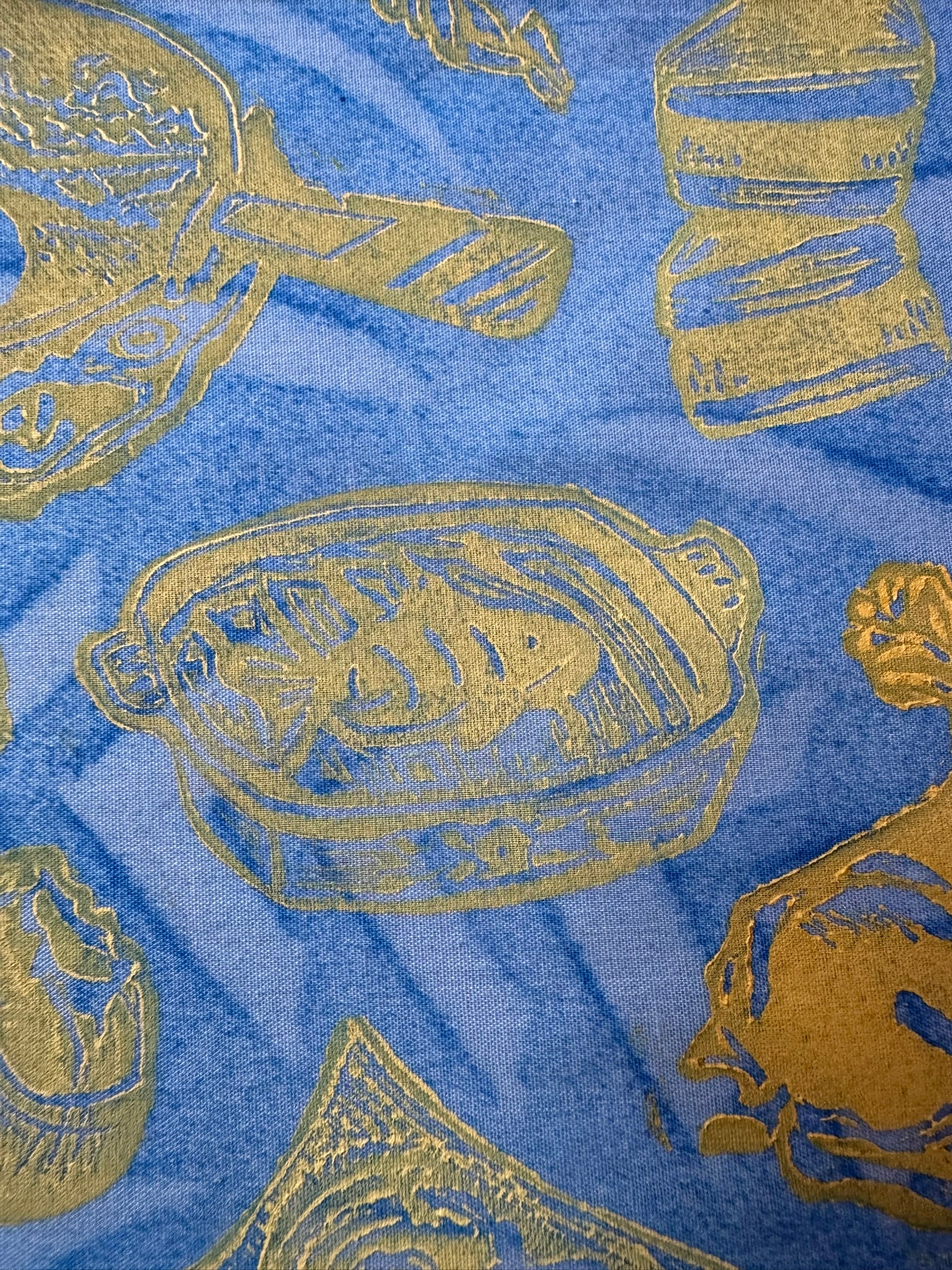 A treasure trove of snacks and cookies to loot. I was deep into my favorite dungeon crawler while carving all the pieces that went into the two styles available, snacks & cookies. Carving and the physicality of printmaking and sewing processes are a needed break from screen-based games for me.