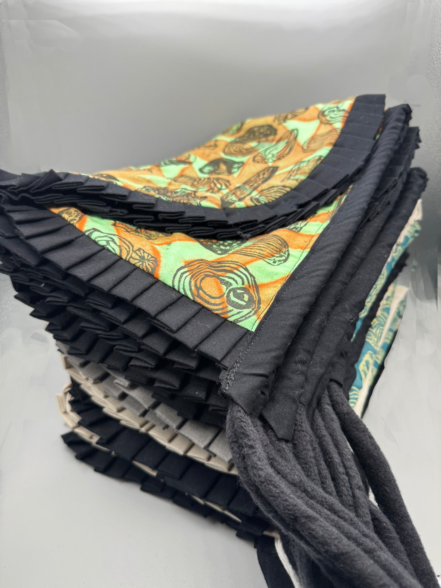 The base fabric of these aprons was originally wood-block printed in American Samoa on a 2022 work visit.