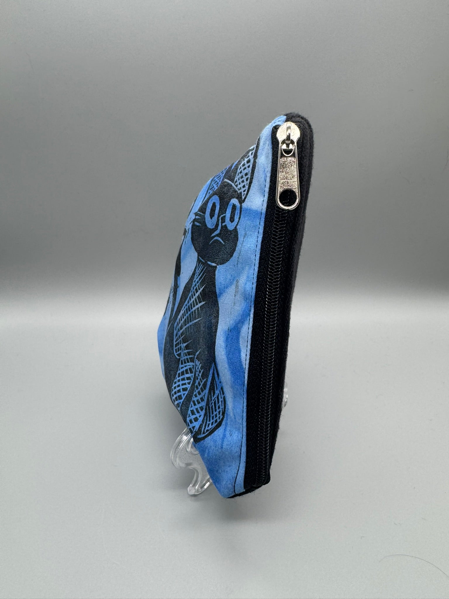Block-Printed Handmade Little Cat Bags | 3" x 4" | Black on Blue