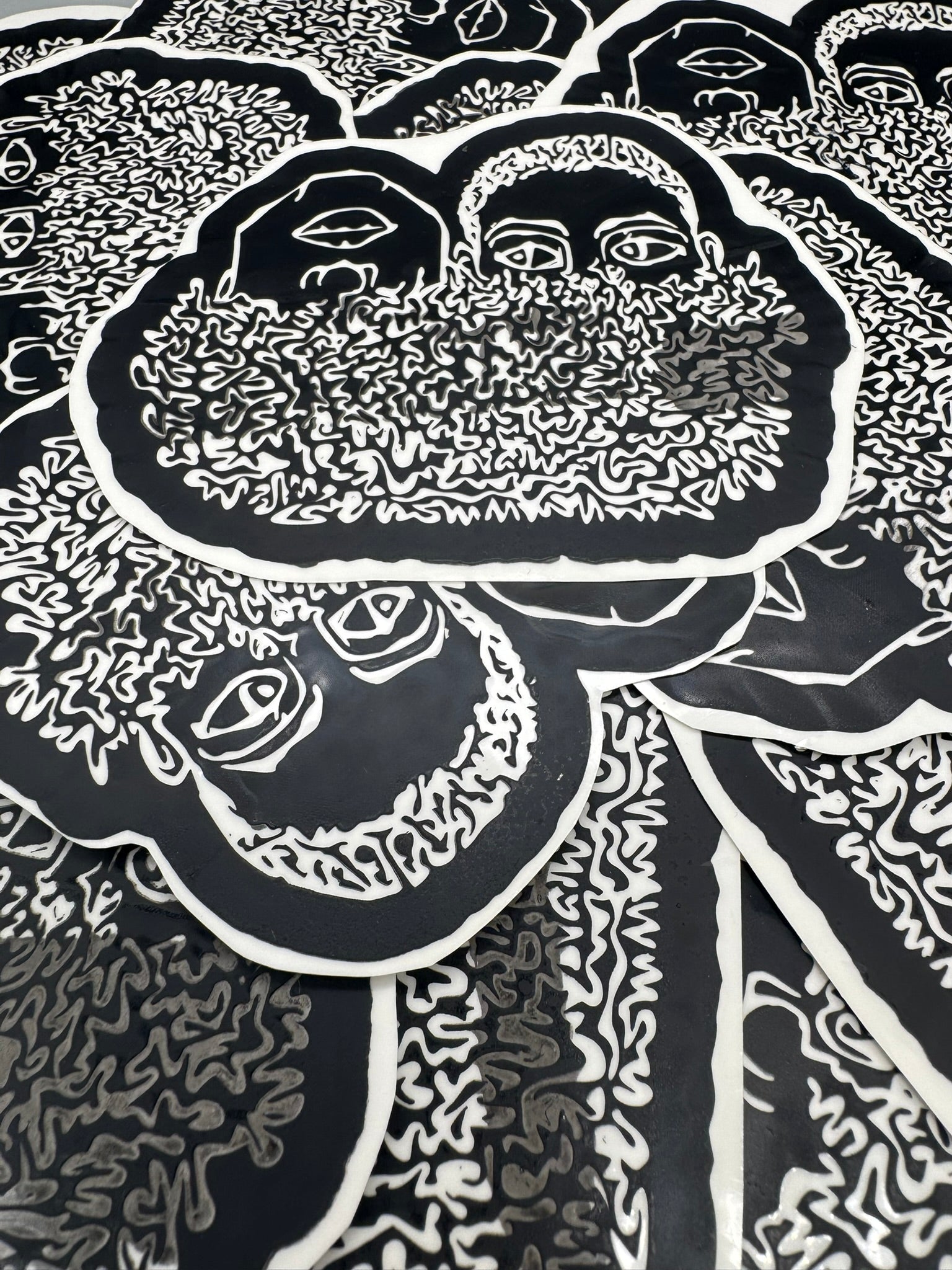 These sticky screenprints started as a pen and ink drawing made while dealing with feelings of keeping my noodle brain together long enough to survive.